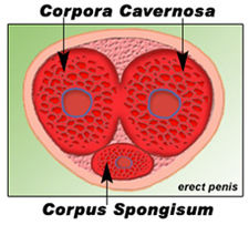 右上阴茎的内视图。您将看到动脉关闭后 防止血液流入阴茎动脉而影响勃起功能能。 The Corpora Cavernosa and Corpus Spongisum vascular tissue bodies fill with blood during an erection.